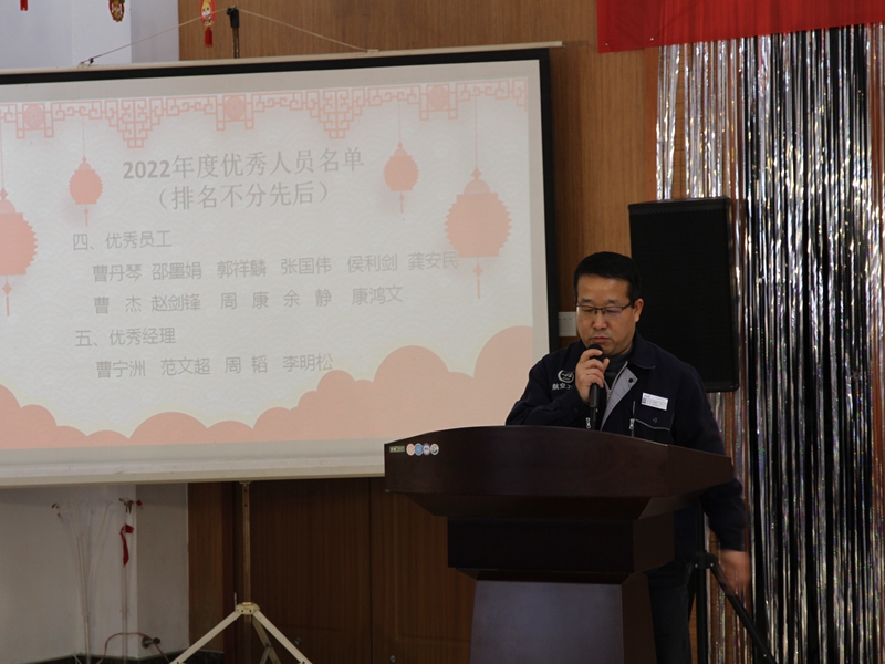公司副總經(jīng)理許如冰同志宣讀了公司先進(jìn)表彰決定,對榮獲2022年度“優(yōu)秀經(jīng)理”、“優(yōu)秀員工”、“保密先進(jìn)個人”、“安全生產(chǎn)先進(jìn)個人”、“工會積極會子”五個獎項25名先進(jìn)個人頒發(fā)榮譽(yù)證書,號召全體員工以受表彰的同志為榜樣,愛崗敬業(yè),再接再厲續(xù)輝煌 。